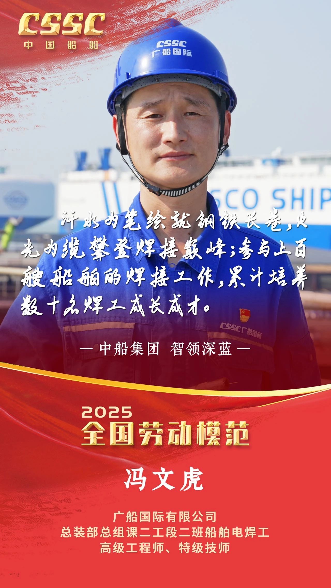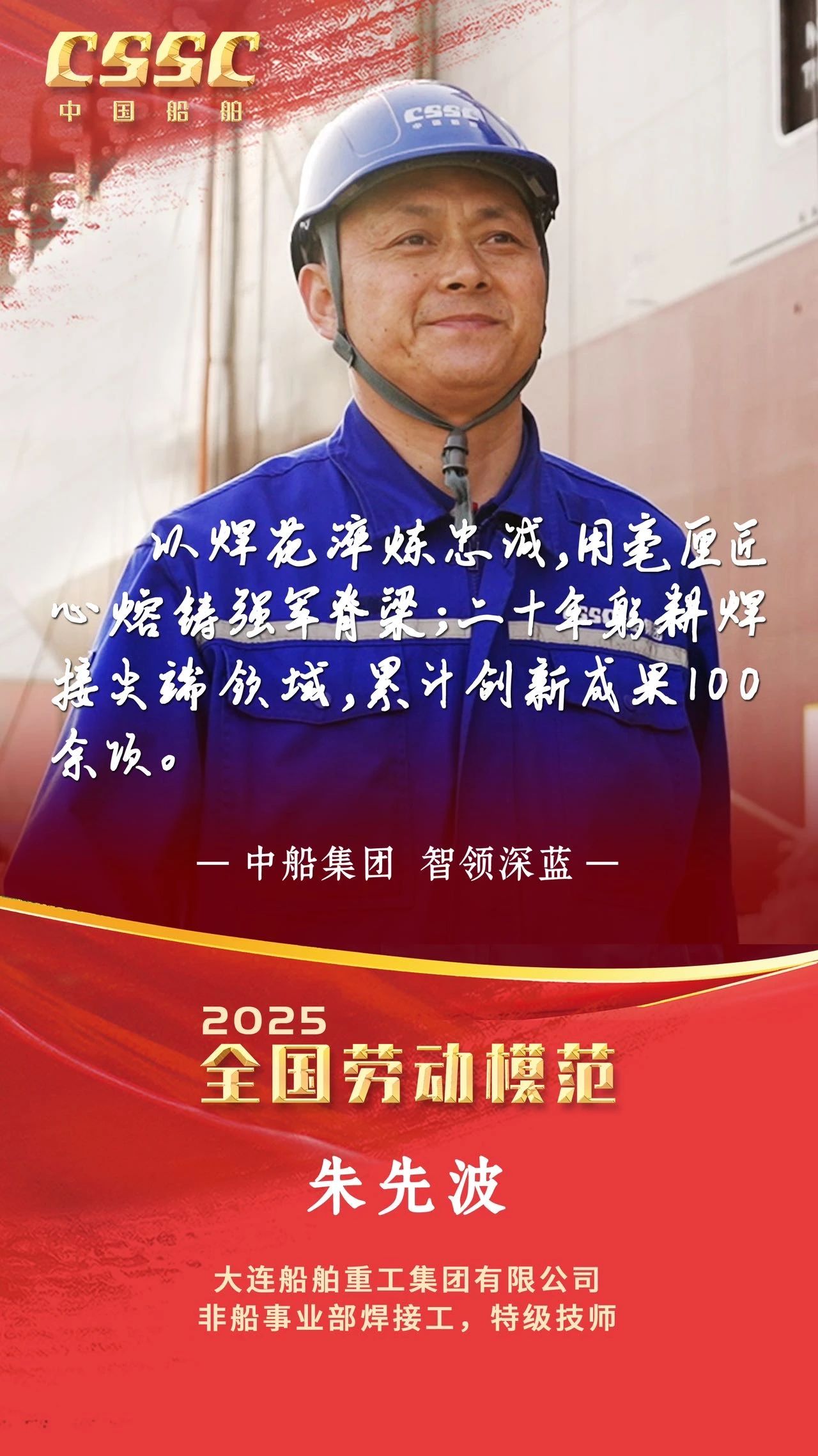 4月28日上午,慶祝中華全國(guó)總工會(huì)成立100周年暨全國(guó)勞動(dòng)模范和先進(jìn)工作者表彰大會(huì)在人民大會(huì)堂隆重舉行。大會(huì)宣讀了《中共中央、國(guó)務(wù)院關(guān)于表彰全國(guó)勞動(dòng)模范和先進(jìn)工作者的決定》。中船集團(tuán)5人被授予全國(guó)勞動(dòng)模范稱號(hào),4人被授予全國(guó)先進(jìn)工作者稱號(hào)。