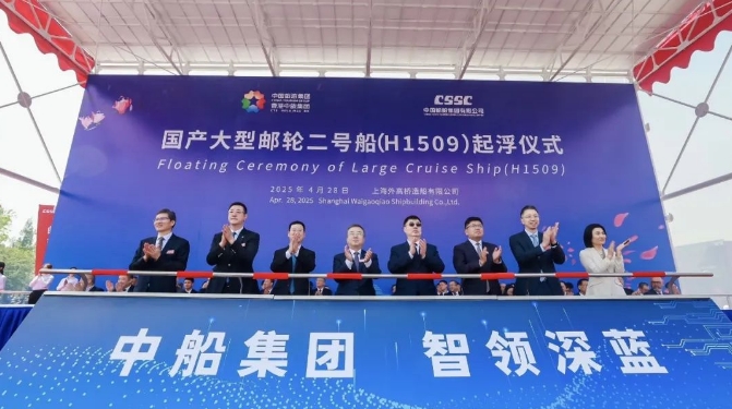 4月28日,第二艘國產(chǎn)大型郵輪“愛達(dá)·花城號”起浮儀式在中國船舶集團(tuán)有限公司旗下外高橋造船舉行。中船集團(tuán)黨組副書記、董事、總經(jīng)理王國強(qiáng)出席儀式并致辭。工信部裝備工業(yè)二司司長徐春榮,中旅集團(tuán)黨委副書記、總經(jīng)理范云軍出席儀式并致辭。文旅部產(chǎn)業(yè)發(fā)展司副司長馬力,中船集團(tuán)黨組成員、副總經(jīng)理胡賢甫,中旅集團(tuán)黨委副書記、董事石善博,上海市經(jīng)濟(jì)和信息化委員會副主任蒲亞鵬,浦東新區(qū)副區(qū)長李慧出席儀式。