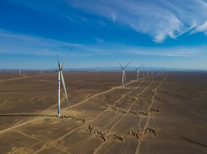 近日,中國船舶集團(tuán)有限公司旗下中船科技為新疆華電天山北麓項目610萬千瓦新能源基地項目三標(biāo)段供貨的100臺機(jī)組全部完成吊裝。