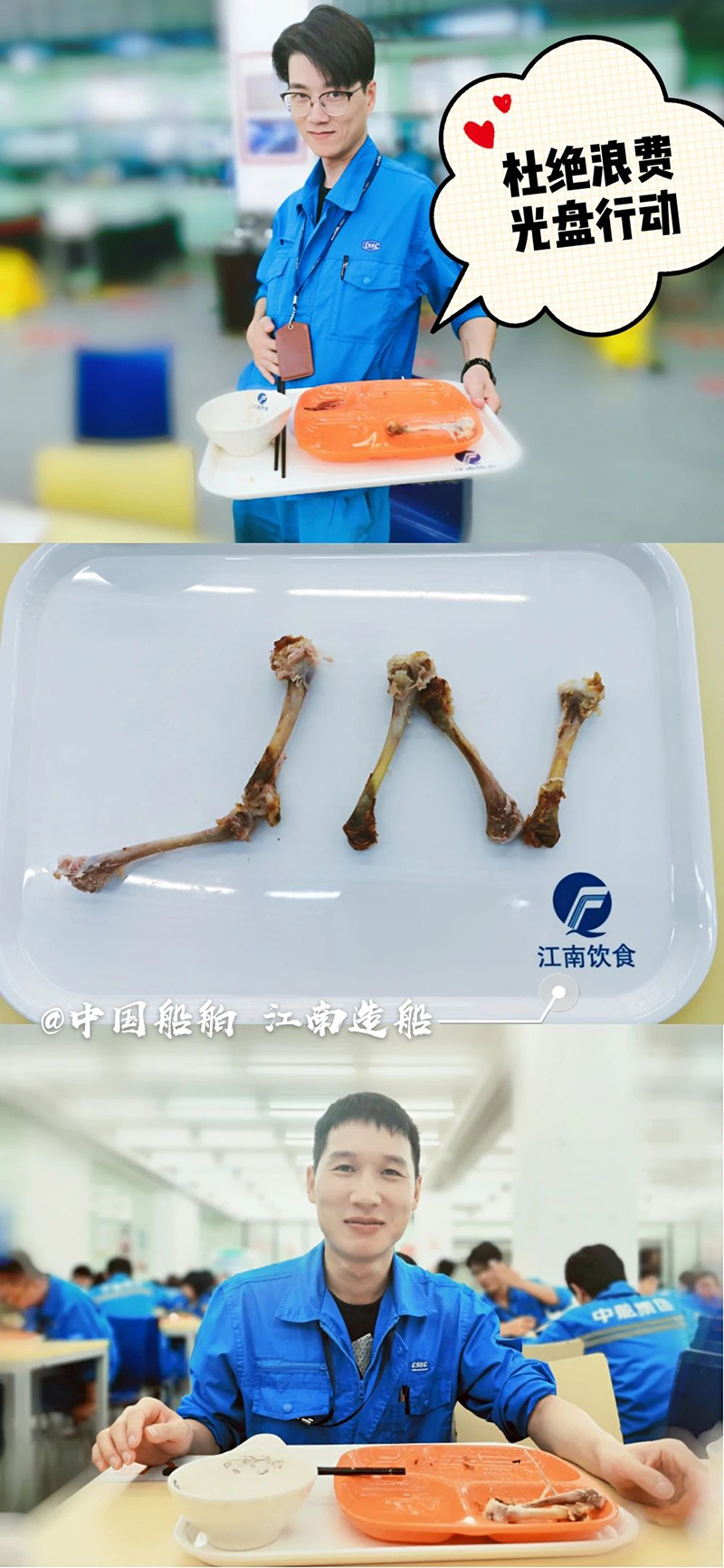 “誰知盤中餐,粒粒皆辛苦。” 自古以來 敬天惜糧、勤儉節(jié)約就是 中華民族傳統(tǒng)美德 中國船舶集團(tuán)多家成員單位 用實(shí)際行動(dòng) 杜絕“舌尖上的浪費(fèi)”
