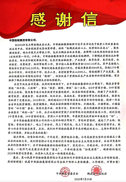 近日,中國船舶集團(tuán)收到了一封來自云南鶴慶的感謝信。從初識到現(xiàn)在,我們已在脫貧攻堅(jiān)的戰(zhàn)場上,攜手奮戰(zhàn)19載,如今正一鼓作氣攻克最后的貧困“堡壘”。