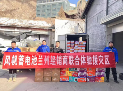12月21日,風(fēng)帆公司聯(lián)合甘肅蓄電池經(jīng)銷商為地震災(zāi)區(qū)臨時救助點(diǎn)提供了飲用水、方便面、棉衣生活物資,支援抗震救災(zāi)工作。